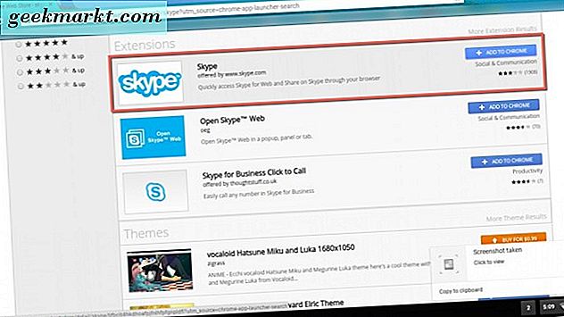 Vor der Liste der Erweiterungen befindet sich eine Liste der Chrome-Apps, die im Chrome Web Store verfügbar sind. Nachdem Sie im Suchfeld "Skype" eingegeben und eingegeben haben, war die Skype-App die erste in der Liste. Zum jetzigen Zeitpunkt können wir die Skype-App für Chrome nicht installieren, obwohl sie mit unserem Asus Chromebook kompatibel ist. Es wird ein Fehlercode angezeigt, der weiter untersucht wird. Wir werden wahrscheinlich einen Beitrag darüber verfassen, wie wir den Fehler für zukünftige Referenz gelöst haben. Andernfalls steht diese Option an zweiter Stelle in unserer Liste der Möglichkeiten, Skype auf Ihrem Chromebook zu verwenden.