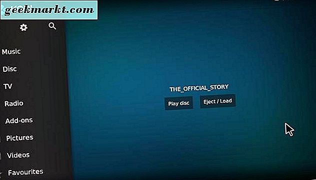 Kodi unterstützt CD, DVD und Blu-ray, sodass Sie Moves in all diesen Formaten ansehen können. Um einen Film von einer CD in Kodi zu sehen, öffnen Sie zuerst das Media Center und legen Sie die CD, DVD oder Blu-ray in den PC ein. Bewegen Sie den Mauszeiger über Disc in der Sidebar von Kodi, wie in der Abbildung unten gezeigt. Dann können Sie eine Play Disk- Taste drücken, um den Film zu sehen.