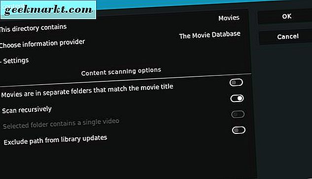 Als Nächstes können Sie auf Dieses Verzeichnis klicken und Filme auswählen. Kodis Standard Movie Scraper findet Fanart, Bewertung und andere Details für den Film. Drücken Sie OK, um den Filmvideoordner zu Kodi hinzuzufügen, den Sie dann öffnen können, indem Sie den Mauszeiger auf dem Startbildschirm über Videos bewegen und ihn unter Medienquellen auswählen. Klicken Sie im Ordner auf einen Film, um ihn im Media Center zu sehen.