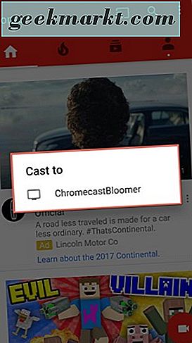 - Tippe einfach auf deinen Chromecast-Gerätenamen, um über das Chromecast-Gerät mit der Übertragung von der YouTube-App zu beginnen.