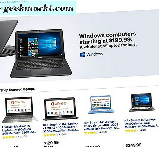 - Wiederverkäufer von Drittanbietern : Best Buy und Amazon sind die beiden offensichtlichen Alternativen. Beide bieten eine große Auswahl an Laptops und Desktops, die von Benutzern zu mehreren Preisen erworben werden können. Best Buy hat ordentliche Laptops ab nur 199, 99 $, mit einem ganzen "Affordable Computers" Abschnitt, den Sie einfach durchsuchen können. Zum Zeitpunkt des Schreibens sind einige dieser Laptops sogar so niedrig wie $ 129, 99 im Verkauf gesunken. In ähnlicher Weise hat Amazon eine Reihe von Computern für rund 199 Dollar zur Verfügung und hat oft Verkäufe, die es Benutzern ermöglichen, anständige Laptops zu günstigen Preisen abzunehmen. Jeder Ort ist eine gute Option, um einen Laptop zu billigen, und in Anbetracht der Tatsache, Best Buy ist auch ein physischer Händler, auch eine gute Möglichkeit, einen Laptop schnell zu greifen, wenn Sie in Not sind. WalMart bietet auch eine Auswahl an Laptops an, die sowohl online als auch in ihren Geschäften zum Kauf angeboten werden, obwohl sich diese Geräte tendenziell nur im unteren Preissegment befinden. Newegg und B & H sind zwei weitere Einzelhändler, die spezialisierte Hardware anbieten können, die sich in der Regel an Experten, Spieler oder Content-Ersteller richtet.