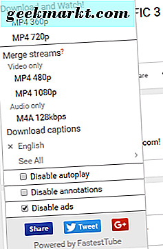 Wenn Sie ein neues YouTube-Video öffnen, werden Sie feststellen, dass dem Video eine Download-Schaltfläche hinzugefügt wurde, auf die Sie klicken können, um ein Menü zu öffnen, mit dem Sie Videos sowohl im Audio- als auch im Videoformat herunterladen können. Wenn Sie das gesamte Video sowohl mit Audio als auch mit Video speichern möchten, können Sie das Video entweder in 360p oder 720p im MP4-Format speichern. Wenn Sie das Video in einer höheren Qualität speichern möchten, z. B. für die Verwendung in einer eigenen Videoproduktion, sollten Sie vor dem Synchronisieren der beiden Teile eine reine 1080p-Kopie mit einem hochwertigen M4A-Audiostream herunterladen zurück in der Schnittsoftware Ihrer Wahl.