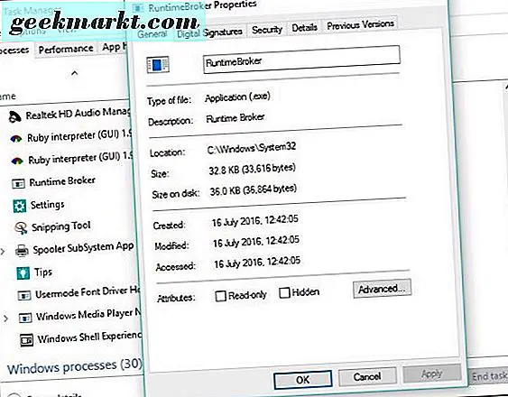 Runtimebroker.exe sollte bei der Verwendung neben Null Prozessorzyklen und nur ein kleines bisschen RAM verwenden. Auf meinem Windows 10 PC verwendet runtimebroker.exe 0% CPU und 10, 7 MB RAM. Jedes Mal, wenn Sie eine App öffnen, benötigt der Prozess ein wenig mehr Ressourcen, um zu überwachen, was passiert. Je mehr Apps Sie verwenden, desto mehr Ressourcen benötigen Sie.